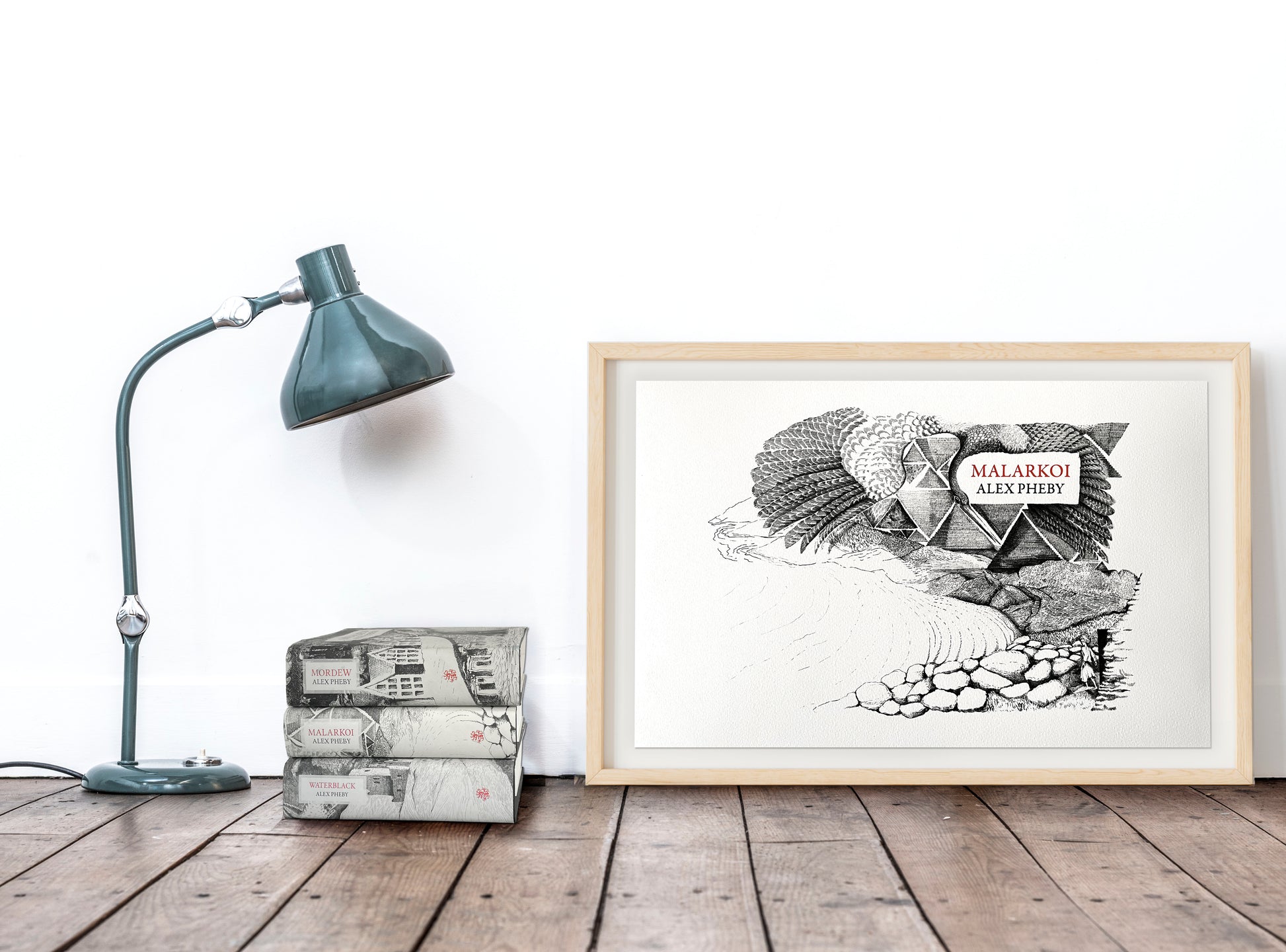 After many requests, I am delighted to offer a strictly limited edition of 50 fine art prints of the full Malarkoi cover — originally created as a wrap-around jacket design to the hardback edition.